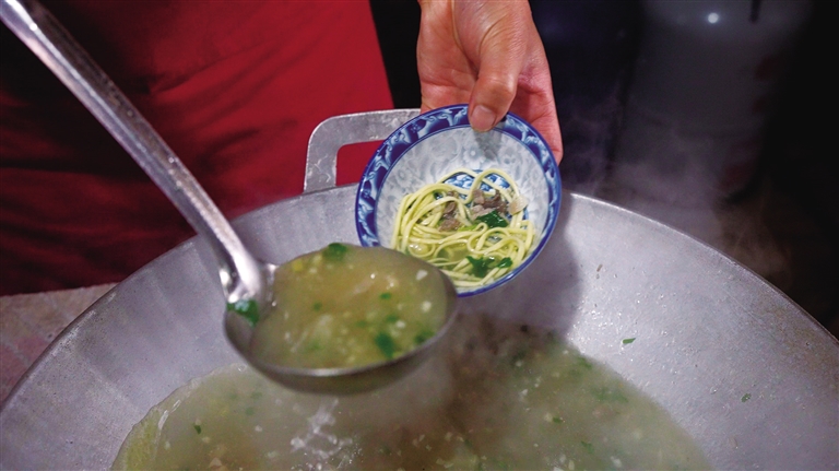 2010年,鹽井加加面被列入西藏自治區(qū)級非物質(zhì)文化遺產(chǎn)代表性名錄。37歲的果拉卓瑪,是這項技藝的傳承者之一。她回憶道,早年父母在街邊支攤賣面時,加加面只是再尋常不過的一道家常面食。如今,這碗面被賦予了文化符號的意義——食客們比拼碗數(shù),最高紀(jì)錄達147碗,若破紀(jì)錄,還能終生免費吃面?!笆^計數(shù)、民歌敬酒,這些傳統(tǒng)習(xí)俗讓吃面變成了一場熱鬧的儀式?!惫楷斝χf。