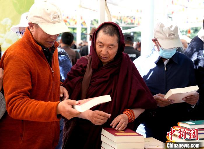 圖為4月19日,第二屆“拉薩春日書(shū)會(huì)”暨拉薩市全民閱讀推廣周系列活動(dòng)開(kāi)幕式上的扎念琴?gòu)棾@盍?攝