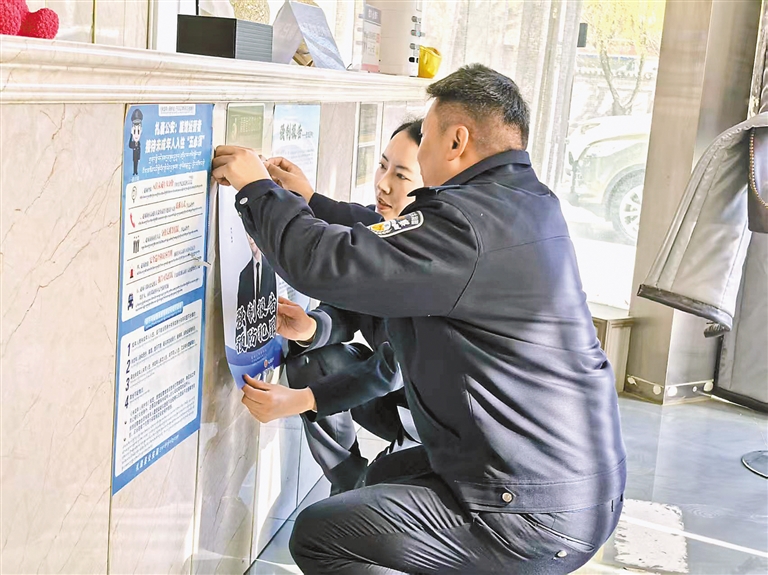 山南檢察司法警察協(xié)助檢察官對校園周邊賓館登記入住情況進(jìn)行執(zhí)法檢查,清理校園周邊環(huán)境。圖片均由山南市檢察院提供