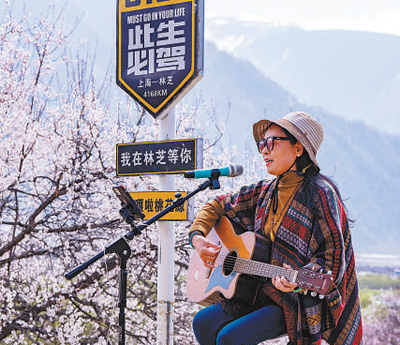 在桃花節(jié)的帶動(dòng)下,當(dāng)?shù)夭惋嫛⒚袼薜壬舷掠萎a(chǎn)業(yè)近年來(lái)十分火熱。夜幕降臨,南迦巴瓦峰腳下的米林市派鎮(zhèn)索松村熱鬧不減,一處處農(nóng)家小院點(diǎn)起篝火,歌手在臺(tái)上彈唱,游客跟著當(dāng)?shù)厝颂疱伹f舞,在桃花間和雪山下深度體驗(yàn)藏族風(fēng)情。