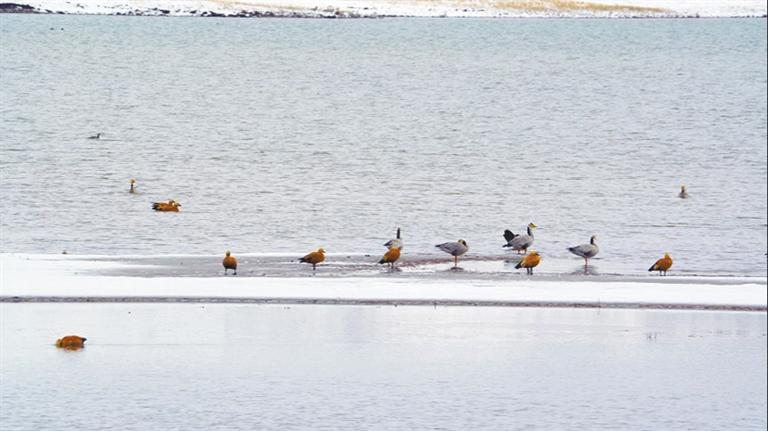 野鴨棲息在林周縣卡孜水庫。 圖片由記者 央金 林周融媒 提供