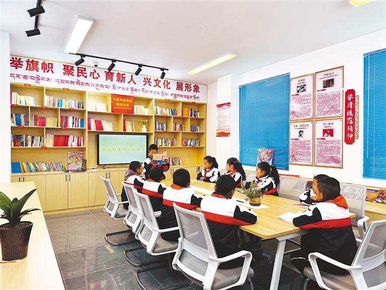 圖為孩子們?cè)诤_(dá)村農(nóng)家書(shū)屋分享閱讀心得。記者 扎西頓珠 攝