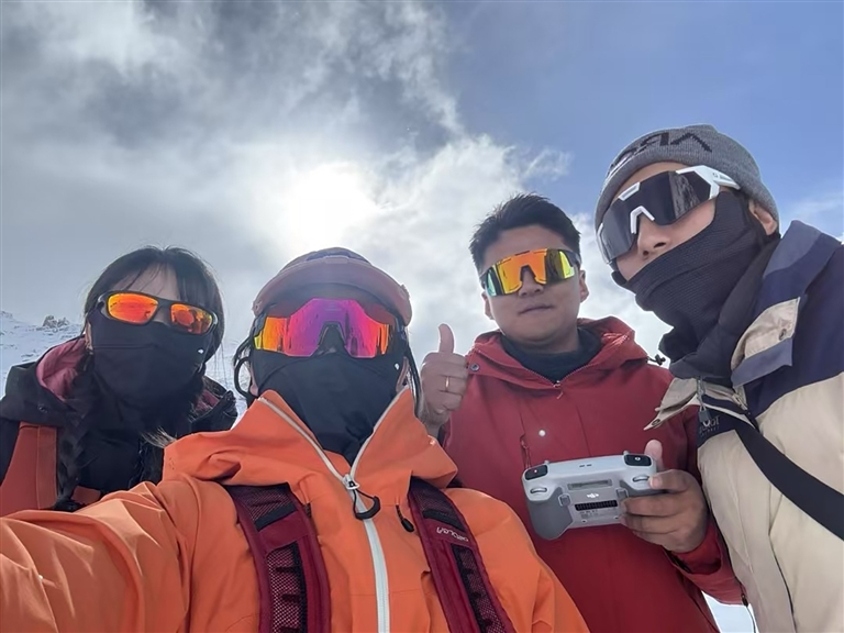 今年是“95后”貢曲羅杰第二次登頂,盡管去年參加過洛堆峰登山探險活動,可雪山的魅力依舊讓他深深著迷?!拔铱粗鵁o人機拍攝下登山者們依次攀爬的過程,莫名激動。而當(dāng)我將焦距調(diào)至七倍對準(zhǔn)山頂時,雪山更是讓我震撼,這就是我一直想要記錄的畫面。”貢曲羅杰說。為了能精準(zhǔn)調(diào)整相機參數(shù),他放棄了保暖必需的手套,一心專注拍攝,直至完成任務(wù)。此次攀登洛堆峰,貢曲羅杰和阿旺尼瑪拍攝了大量出彩的視頻和圖片。