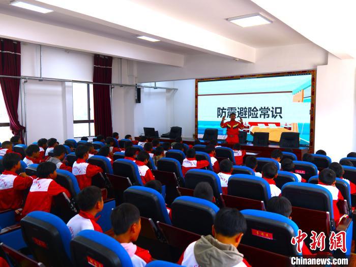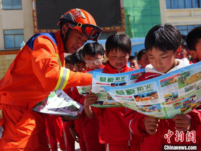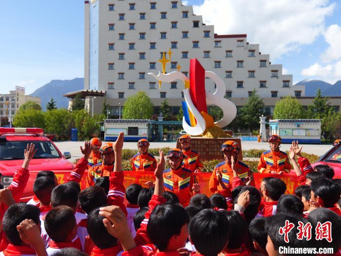 圖為消防救援人員組織學(xué)生進(jìn)行防災(zāi)減災(zāi)知識(shí)互動(dòng)。林芝森林消防支隊(duì)供圖