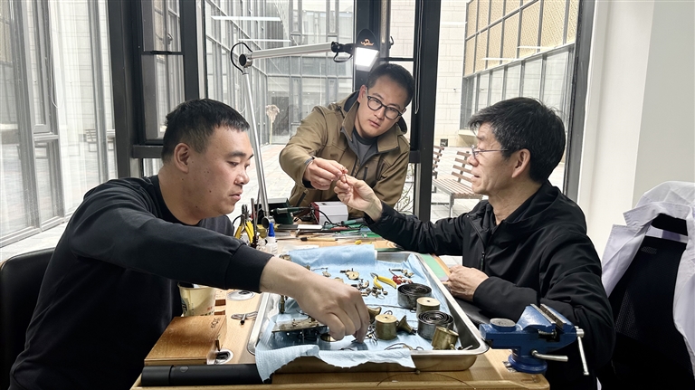 團隊成員葛聰也分享了他的感受:“維修時,我們極易沉浸其中,進入一種心流狀態(tài)。常常一抬頭,時間已悄然流逝——從第一次看表時的8點,到再次抬眼時已到12點。這份對鐘表的熱愛與專注,激勵著我們不斷前行?!?/p>