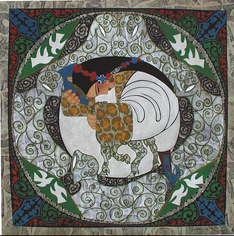 1983年,命運的轉(zhuǎn)機再次降臨。西藏文化部門編纂《西藏舞蹈集成》,急需插圖畫家,“會畫畫的舞者”昂桑被借調(diào),并派至蘇州培訓(xùn)。這段脫離舞蹈訓(xùn)練的經(jīng)歷,讓他明確內(nèi)心方向。1985年,他考入西藏大學(xué)藝術(shù)系,成為唐卡大師丹巴繞旦首批弟子,在導(dǎo)師的指導(dǎo)下,他觸摸到千年礦物顏料的細膩,領(lǐng)悟了傳統(tǒng)藝術(shù)的精神內(nèi)核。