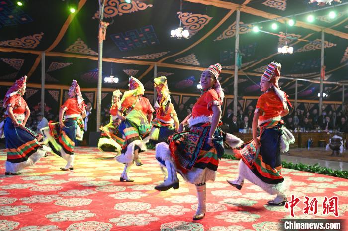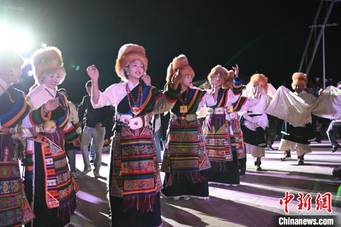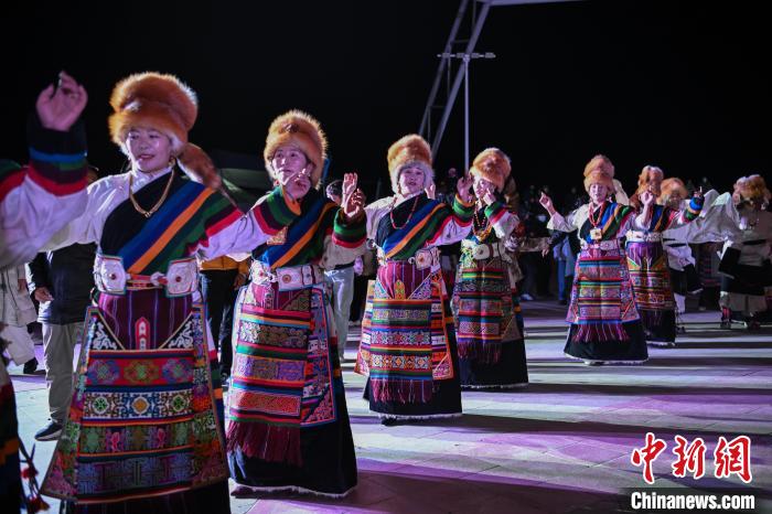 圖為“情定當(dāng)雄”篝火鍋莊晚會(huì)文藝演出現(xiàn)場。中新社記者 貢嘎來松 攝