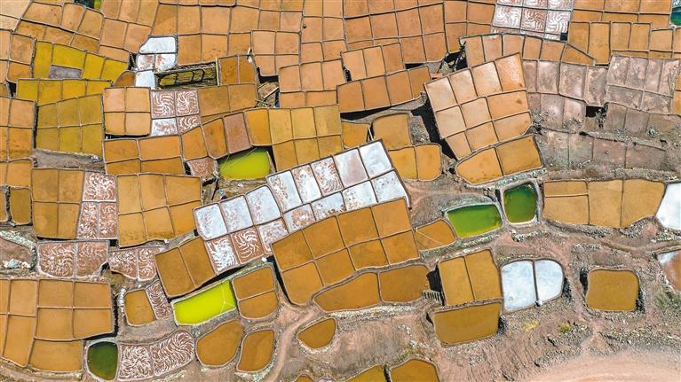 鹽田里,60歲的乃柯正和丈夫一起用木拍夯實(shí)鹽田?!艾F(xiàn)在用泵抽水輕松多了,但拍鹽田的手藝不能丟?!崩先说脑捳Z中,既有對科技的接納,也有對傳統(tǒng)的堅(jiān)守。鹽田下方,鹽晶垂落成簾,在山風(fēng)拂動(dòng)下閃爍微光,仿佛在訴說著什么。一塊塊鹽田如同一面面鏡子,既映照出千年文明的厚重,也折射著鄉(xiāng)村振興的希望。當(dāng)鹽民們輕掃鹽田,他們掃的不僅是晶瑩的鹽,更是一份在傳承與創(chuàng)新中守護(hù)的鄉(xiāng)愁。