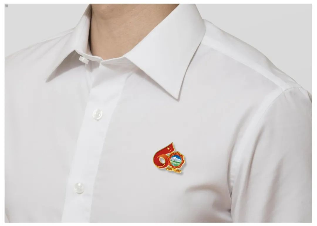 西藏自治區(qū)成立60周年慶?;顒踊諛耸怯晌逍羌t旗延展出的飄帶與格?;ò戥h(huán)構成的數(shù)字“60”造型。飄揚的五星紅旗象征著繁榮昌盛的祖國母親對西藏的關懷與呵護,使西藏在砥礪奮進的60年中綻放出燦爛的格桑花朵。西藏復興號、現(xiàn)代化新農村、風力發(fā)電、雪山、藏羚羊等代表了60年來西藏社會主義現(xiàn)代化建設取得的豐碩成果?!?965-2025”代表西藏自治區(qū)成立60周年。標識兼具中華民族精神與西藏歷史底蘊,整體色彩使用了國旗紅,營造出喜慶、熱烈、祥和的氛圍。