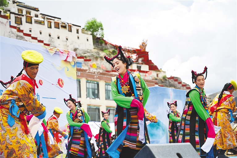 在日喀則市喜迎西藏自治區(qū)成立60周年暨2025年“文化和自然遺產(chǎn)日”非遺宣傳展示活動中,來自全市各縣(區(qū))的19支藏戲隊輪番展演,各色非遺產(chǎn)品集中亮相,為現(xiàn)場觀眾獻上了一場“非遺盛宴”。