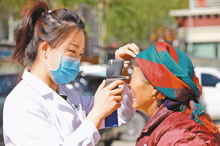 黑龍江省第八批援藏干部人才“雪域光明行”白內(nèi)障篩查救治項目推進現(xiàn)場。