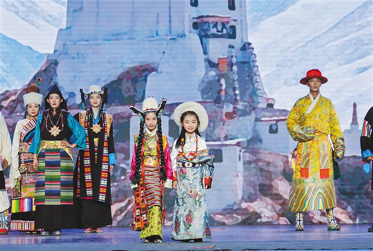 開(kāi)幕式演出,模特展示西藏各地服飾。