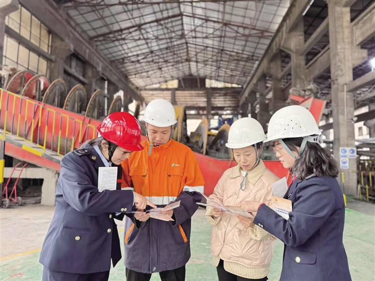 稅務工作人員在礦山企業(yè)生產(chǎn)經(jīng)營場所開展稅費宣傳。圖由自治區(qū)稅務局提供