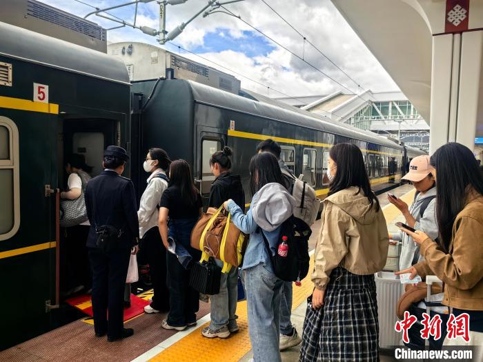 圖為2025年7月1日,旅客在西藏林芝火車站排隊登車。張碩攝