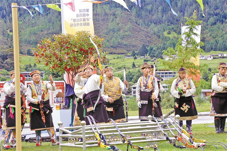 群眾身著節(jié)日盛裝,展示非遺工布響箭風(fēng)采。記者 謝筱純 攝