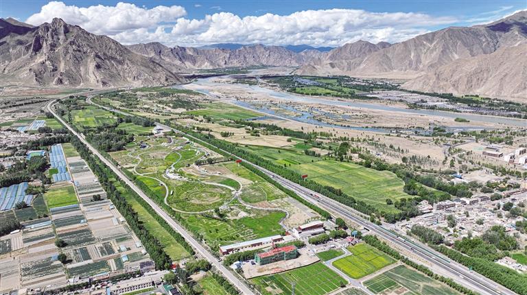 曲水縣才納鎮(zhèn)國家現(xiàn)代農(nóng)業(yè)示范區(qū)距拉薩市區(qū)30公里,毗鄰拉薩貢嘎國際機(jī)場,拉日鐵路穿境而過,憑借獨(dú)特區(qū)位成為連接城鄉(xiāng)、輻射內(nèi)外的農(nóng)業(yè)樞紐區(qū)。