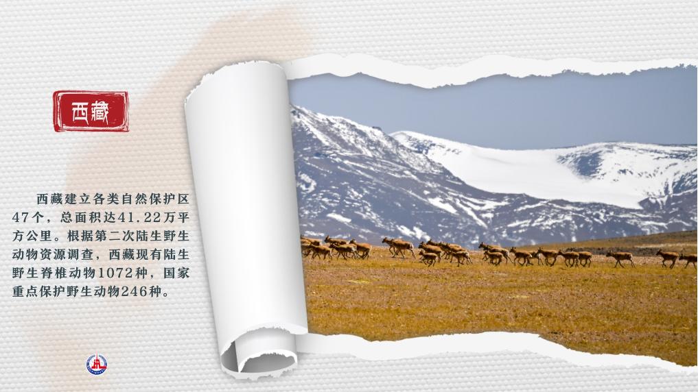 西藏建立各類自然保護區(qū)47個,總面積達41.22萬平方公里。根據第二次陸生野生動物資源調查,西藏現有陸生野生脊椎動物1072種,國家重點保護野生動物246種。