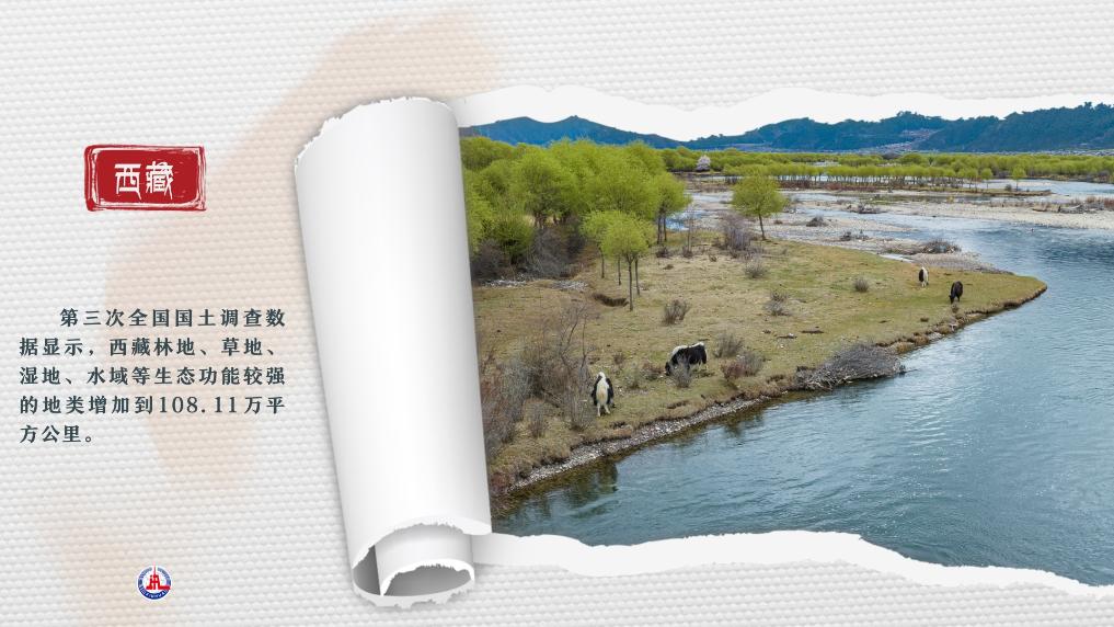 第三次全國國土調查數據顯示,西藏林地、草地、濕地、水域等生態(tài)功能較強的地類增加到108.11萬平方公里。