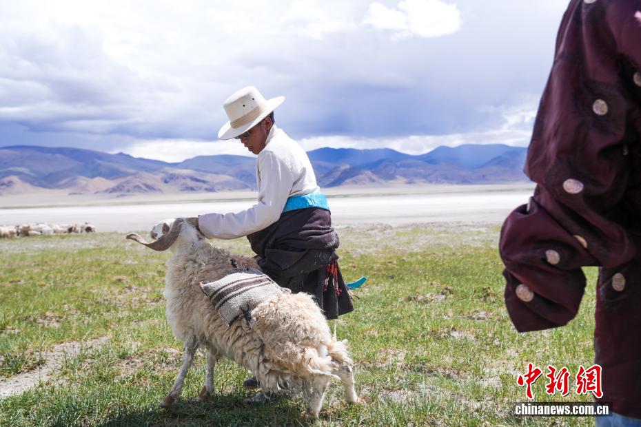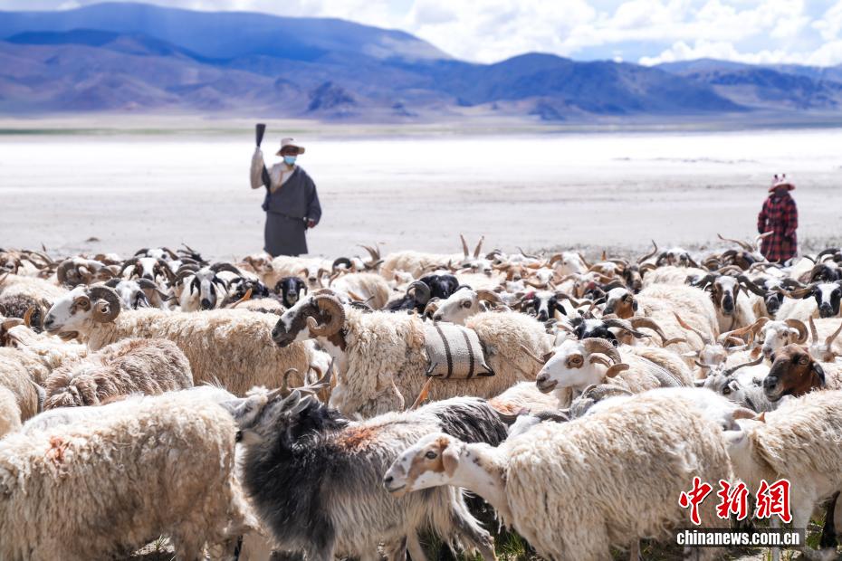 7月20日,在西藏阿里地區(qū)革吉縣鹽湖鄉(xiāng),牧民從羊群中牽引一只將要馱負(fù)鹽袋的羊。一千多年前,阿里地區(qū)有50多家駐扎的鹽幫,將自然鹽用羊馱牛背邊放牧邊運(yùn)輸?shù)姆绞剑\(yùn)送到普蘭、日喀則、印度、尼泊爾等地,并用以物易物的方式換回青稞、磚茶、布料等日常生活所需的物品,從而孕育了遠(yuǎn)負(fù)盛名的“鹽羊古道”傳奇。近年來(lái),當(dāng)?shù)亻_(kāi)辦粗鹽巴加工廠、打造“鹽羊古道”旅游品牌等方式,使千年“鹽羊古道”煥發(fā)新生機(jī)。中新社記者 張祥毅 攝