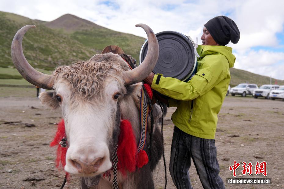 7月21日,在岡仁波齊山腳下,牦牛運輸隊隊員往牦牛背上綁縛物資,準備將其運輸至轉(zhuǎn)山徒步路線的補給站。岡仁波齊位于西藏阿里地區(qū)普蘭縣境內(nèi),是岡底斯山的主峰,也是藏傳佛教的神山之一,每年吸引眾多信徒前往轉(zhuǎn)山,并衍生出徒步旅行的經(jīng)典路線。每年來自國內(nèi)外的徒步旅行者為當?shù)貏?chuàng)造就業(yè)機會的同時,也推動了文旅產(chǎn)業(yè)的發(fā)展。中新社記者 張祥毅 攝