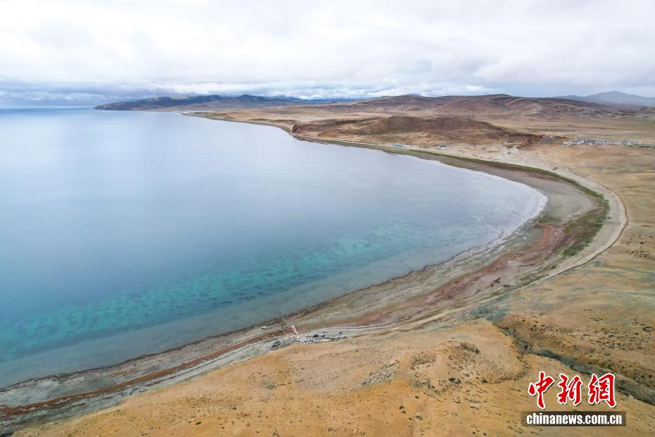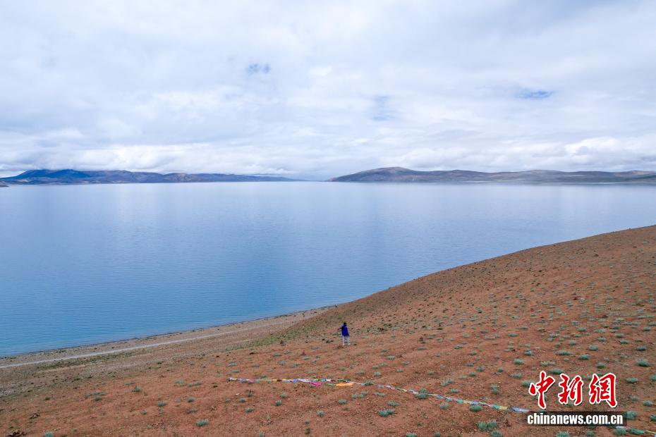 7月22日,游客游覽拉昂錯?,斉杂哄e與拉昂錯位于西藏阿里地區(qū)普蘭縣境內(nèi),兩湖僅有一堤之隔,卻擁有不同的地理特征和咸淡水之分,因而分別被譽為“圣湖”與“鬼湖”。每年夏天,兩湖與附近的岡仁波齊一道,吸引眾多游客前來賞景游覽。(無人機照片)中新社記者 張祥毅 攝