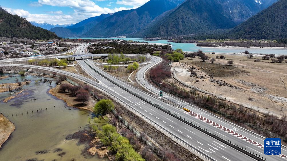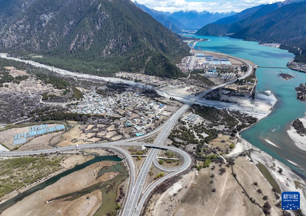 拉薩至林芝的高等級公路(無人機照片,2025年4月1日攝)。新華社記者 晉美多吉 攝