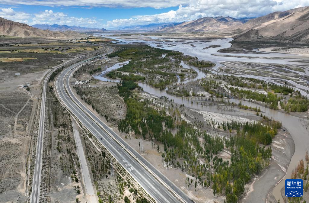 拉薩至日喀則的高等級公路(無人機照片,2024年9月11日攝)。新華社記者 晉美多吉 攝