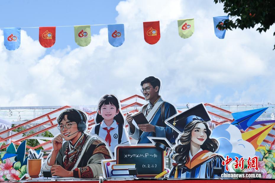 圖為以教育為主題的人行天橋。中新社記者 貢嘎來松 攝