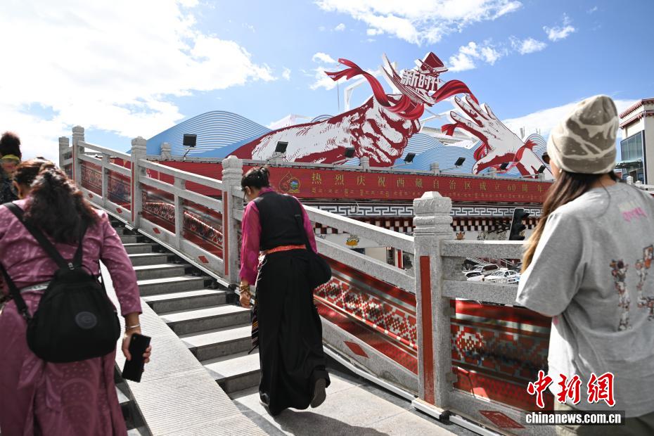 圖為以新時代為主題的人行天橋。中新社記者 貢嘎來松 攝