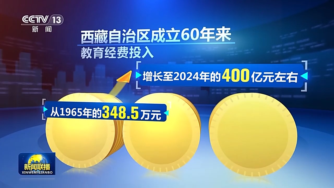 西藏自治區(qū)成立60年來(lái),教育經(jīng)費(fèi)投入從1965年的348.5萬(wàn)元增長(zhǎng)至2024年的400億元左右。從2012年開(kāi)始,西藏在全國(guó)率先建立從學(xué)前到高中的15年公費(fèi)教育體系。如今的西藏,已建成涵蓋學(xué)前教育、基礎(chǔ)教育、職業(yè)教育、高等教育等完整的現(xiàn)代教育體系。從文盲率高達(dá)95%以上,到如今的新增勞動(dòng)力平均受教育年限達(dá)13.1年,西藏教育實(shí)現(xiàn)了“歷史性跨越”。