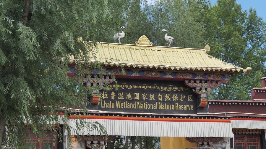 綠樹掩映下的拉魯濕地國家級自然保護(hù)區(qū)南門。新華社記者 黃智琪 攝