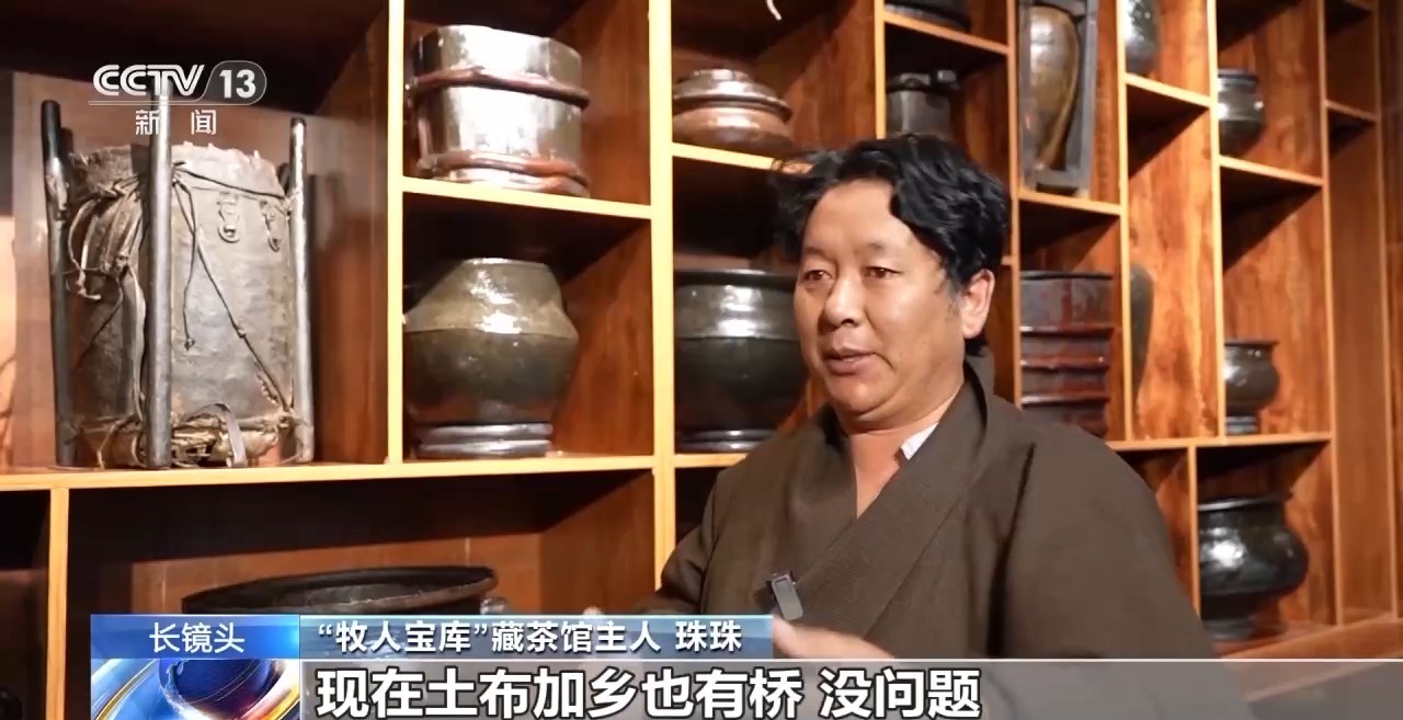 “牧人寶庫”藏茶館主人 珠珠:現(xiàn)在在黨的恩情下,所有事情都變得便捷。以前沒水的地方有了水、沒電的地方通了電、沒路的地方有了路,我有信心會變得越來越好。