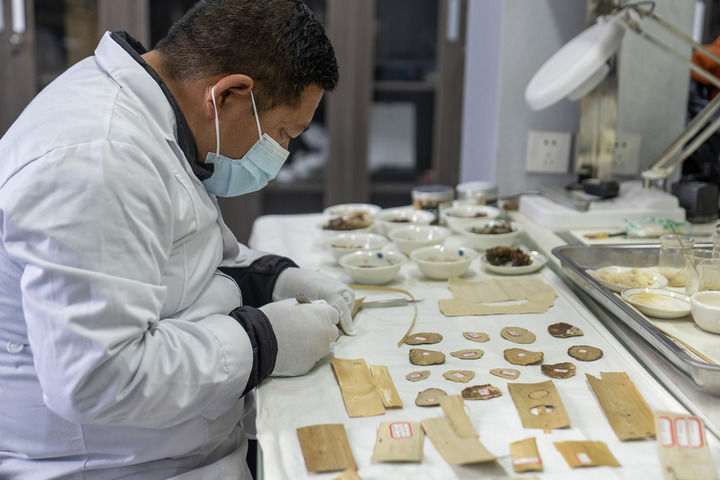 “貝葉經(jīng)修復(fù)技術(shù)在全世界沒(méi)有統(tǒng)一的標(biāo)準(zhǔn),也沒(méi)有具體的修復(fù)流程。我們是一步步探索和創(chuàng)新,才取得了重要突破?!辈歼_(dá)拉宮管理處文??乒ぷ魅藛T冷本凱介紹說(shuō)。
