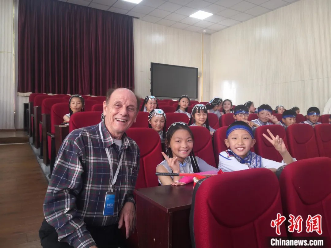 2023年5月,柯馬凱在林芝市第二小學(xué)和學(xué)生合影。受訪者供圖