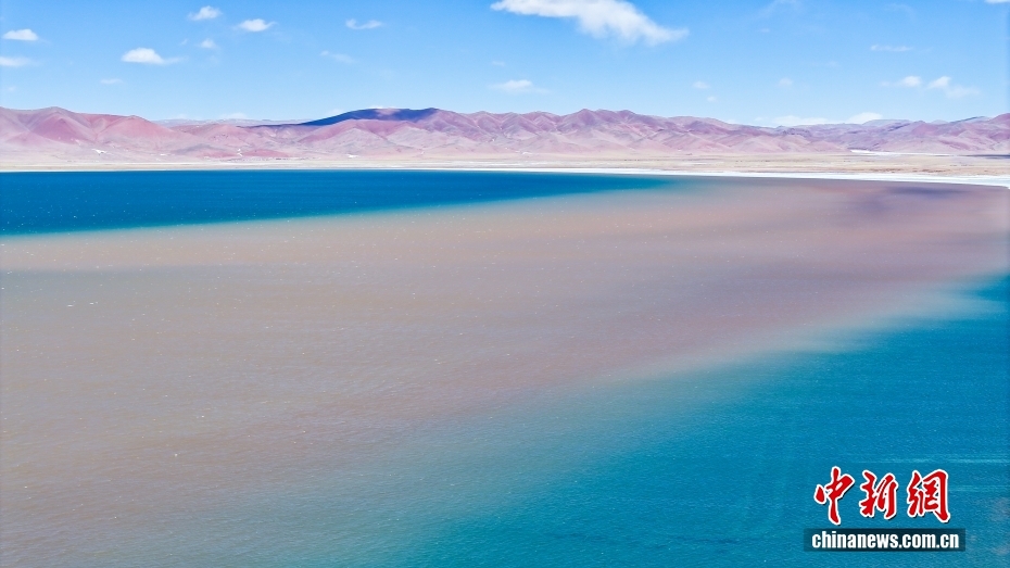 西藏自治區(qū)那曲市安多縣錯那湖,湖水交匯處好似“鴛鴦火鍋”。(無人機(jī)照片)中新社記者 馬銘言 攝