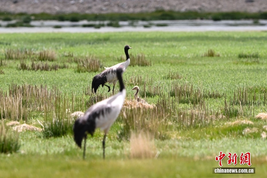 在海拔4700米的西藏自治區(qū)那曲市申扎縣濕地里,黑頸鶴一家在悠閑覓食。黑頸鶴是中國國家一級重點保護(hù)野生動物,屬高原特有鶴類,主要棲息于海拔2500米至5000米的高原沼澤地、湖泊及河灘等濕地環(huán)境。每年四月起,成對的黑頸鶴陸續(xù)飛抵西藏自治區(qū)那曲市申扎縣,在此繁育后代。中新社記者 貢嘎來松 攝