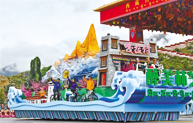 “醉美林芝”彩車。本網(wǎng)記者 旦增蘭澤 攝