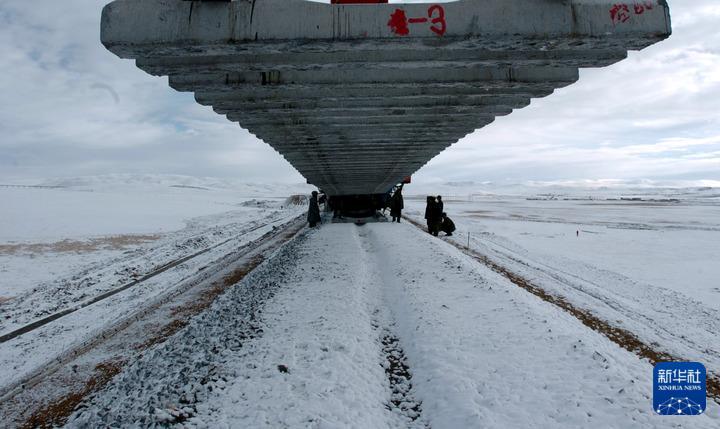2004年10月9日,雪中的青藏鐵路施工現(xiàn)場。