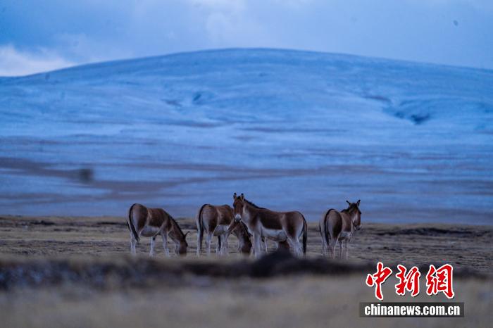 2024年10月23日,中國國家一級(jí)保護(hù)動(dòng)物藏野驢在西藏自治區(qū)那曲市安多縣多瑪鄉(xiāng)境內(nèi)的草原上覓食、嬉戲。中新社記者 貢嘎來松 攝