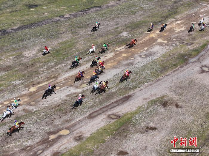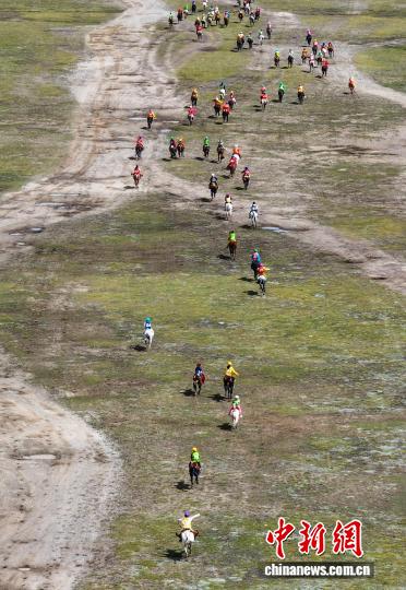 圖為恰青賽馬節(jié)傳統(tǒng)大跑決賽現場(無人機照片)。中新社記者 貢嘎來松 攝