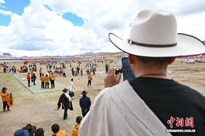 圖為當地民眾用手機直播恰青賽馬節(jié)傳統(tǒng)大跑決賽。中新社記者 貢嘎來松 攝