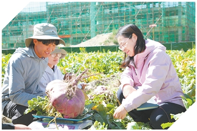 拉薩河畔,晨霧未散,曲水才納國(guó)家現(xiàn)代農(nóng)業(yè)示范區(qū)里一派豐收景象,一顆顆蕪菁大如籃球。中國(guó)科學(xué)院青藏高原研究所副研究員姜麗麗雙手托住其中一顆直徑近30厘米的蕪菁,激動(dòng)地說(shuō):“沒(méi)想到能長(zhǎng)這么大!”