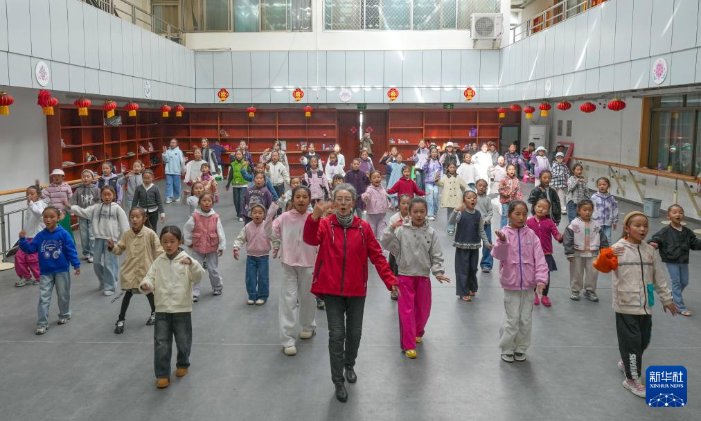 9月14日,巴桑老師在西藏自治區(qū)群藝館帶領孩子們學習藏戲表演。新華社記者 晉美多吉 攝
