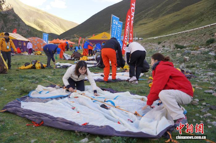 圖為徒步愛好者在楚布溝露營(yíng)點(diǎn)搭帳篷。貢曲羅杰 攝