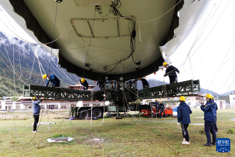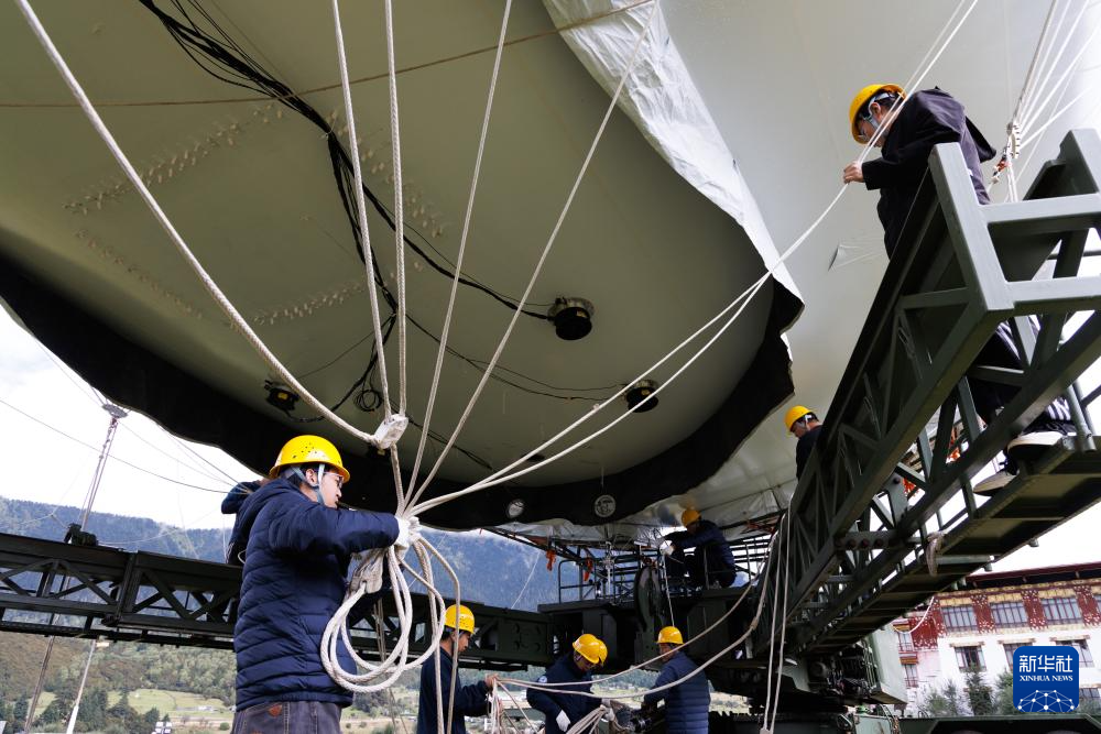 9月18日,極目一號”浮空艇大氣觀測試驗(yàn)現(xiàn)場,科研人員在調(diào)試觀測載荷。新華社記者 金立旺 攝