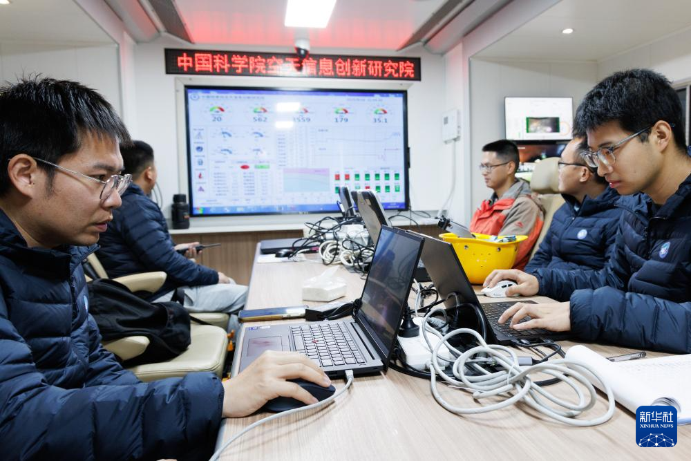 9月18日,“極目一號”浮空艇大氣觀測試驗(yàn)現(xiàn)場控制室,科研人員在觀察試驗(yàn)進(jìn)展。新華社記者 金立旺 攝