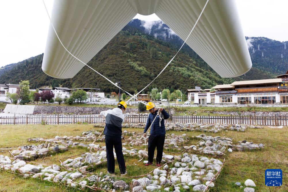 9月18日,“極目一號”浮空艇大氣觀測試驗(yàn)現(xiàn)場,科研人員在操作輔助系索。新華社記者 金立旺 攝