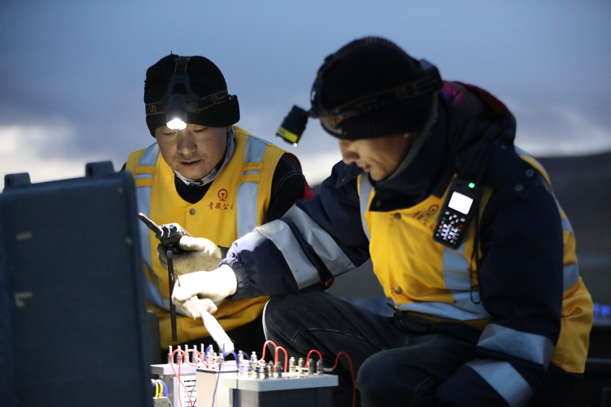 與此同時,在海拔4000多米的火車隧道旁,另一場守護正在上演。變配電專修工區(qū)副工長登增次仁正帶領(lǐng)工友,背著沉甸甸的工具包,攀爬在陡峭的護坡上。寒風(fēng)如刀,他們的腳步卻無比堅實。