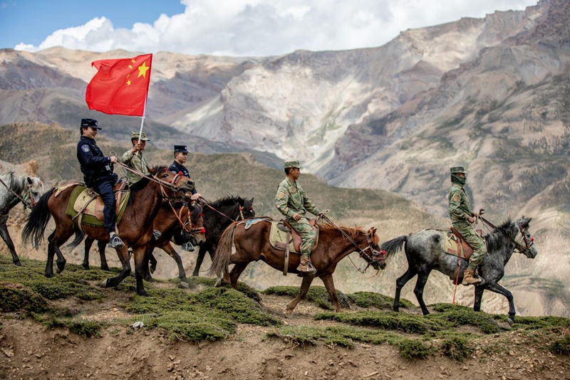 更艱險的巡邊路,隱沒在海拔5000米的峭壁之上。民警、戰(zhàn)士與村民騎著馬,在絕壁間逶迤前行,落石與暗冰隨時可能出現(xiàn)。次仁多布杰輕撫馬鬃,聲音如雪山般沉穩(wěn):“我父親的父親的父親就在這里出生,這里必須有人守。我住,我的孩子也要??!若無人守邊,何人護國?”作為受人尊敬的村醫(yī),他本可退休進城,安享優(yōu)渥。但他依然選擇守護這片土地。