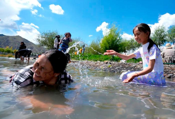 2025年9月13日,民眾在拉薩河邊享受沐浴節(jié)時(shí)光。沐浴節(jié),藏語(yǔ)稱為“嘎瑪日吉”。中新社記者 李林 攝
